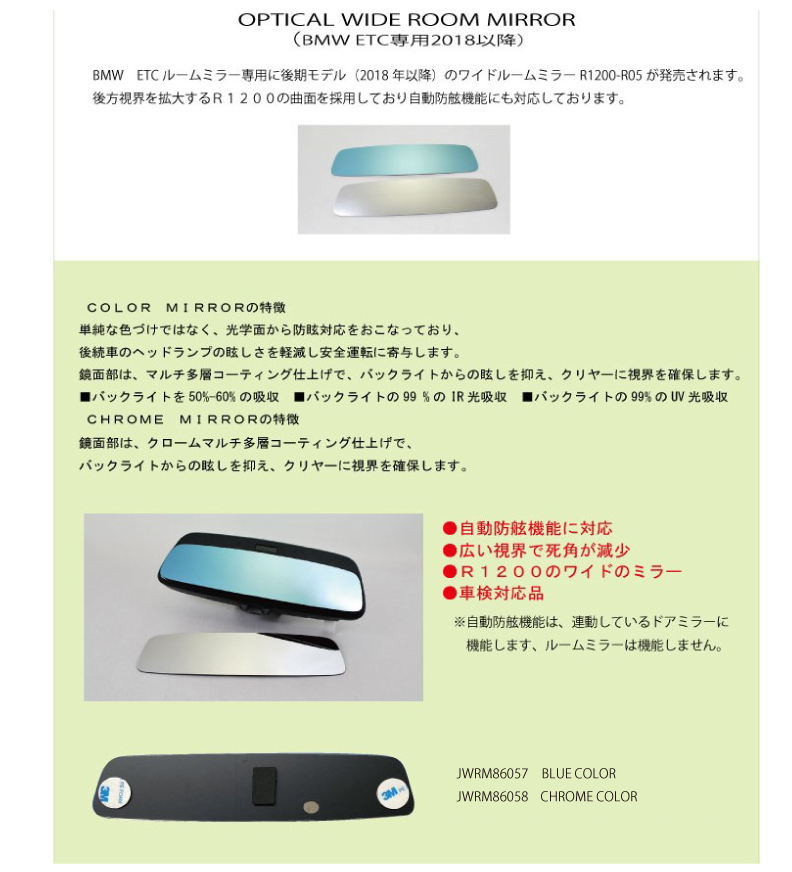 ![]() 全てをカバーするBMW ETC専用ワイドルームミラー |